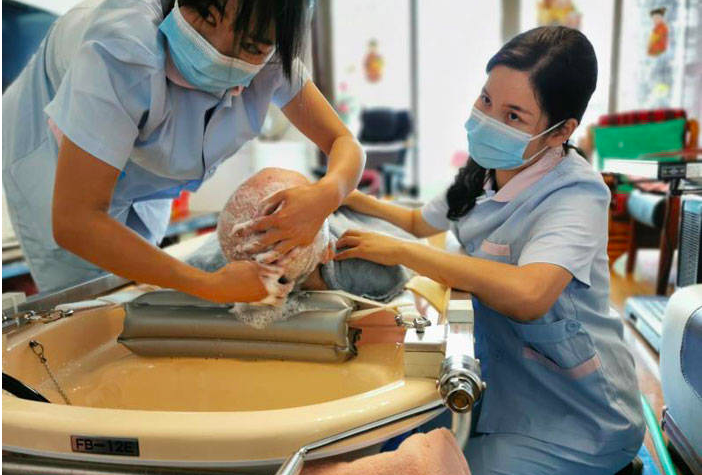 老年人的洗澡服务需求不断增加,于是诞生了一个新兴的职业“老人助浴师”,他们以专业手法的服务,照顾了老年人的健康和生命尊严,同时解决了失能老人子女的时间与精力,也能满足子女对于父母的关心,2021年美团平台向我们提供的数据,“老人助浴”“老人洗澡”等关键词搜索量同比增长达808.06%,“老人助浴”订单量同比增长1450%。对于长期卧床的老年人,我们建议每1~2周能够洗澡一次,对于这些老人来说,能个热水澡是非常幸福的事情。